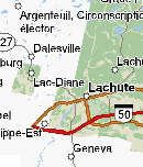 6 kilomètres, sur la 329, direction Lachute, jusqu'à l'intersection