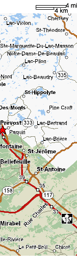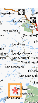 6 kilomètres, sur la 329, direction Lachute, jusqu'à l'intersection