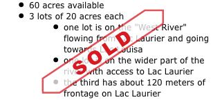 A large development project known as CITW (complexe intégré touristique de Wentworth) has announced the intention to invest, acquire and devlelop a large section close to lac Louisa.